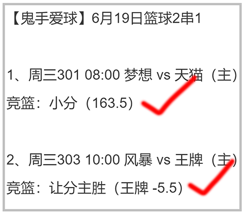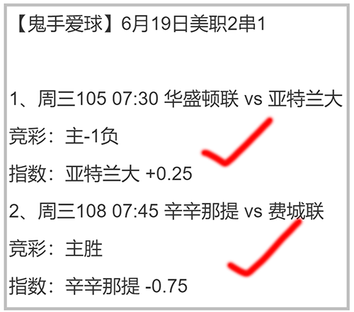 足篮球命中4个2串1,其中主任足球收两串,篮球2串红其一,单场两组3中2收1串!