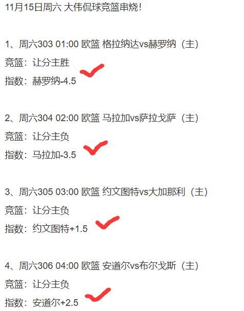 3.1、欧篮4串1,看好赫罗纳+马拉加+约文图特+安道尔方向打出!