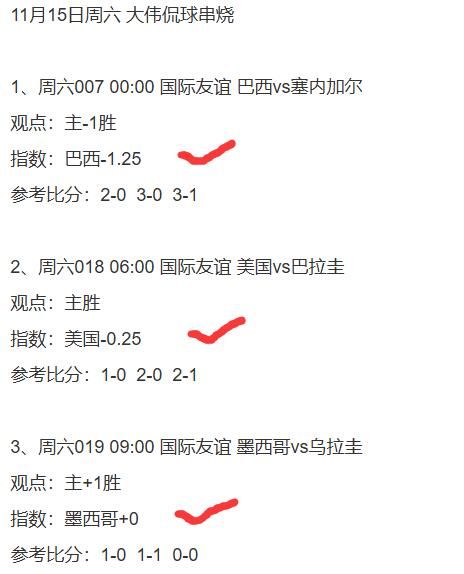 1.2、国际友谊3串1,看好巴西+美国+墨西哥方向打出!