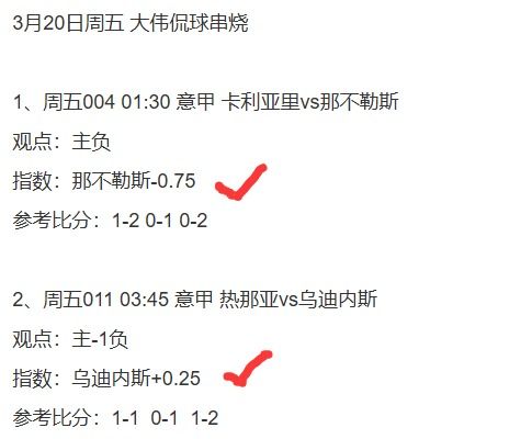 2、意甲2串1,看好那不勒斯+乌迪内斯方向打出!