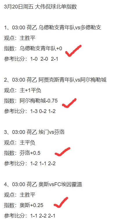 5、荷乙4串1,看好乌德勒支青年队+阿尔梅勒城+芬洛+奥斯方向打出!