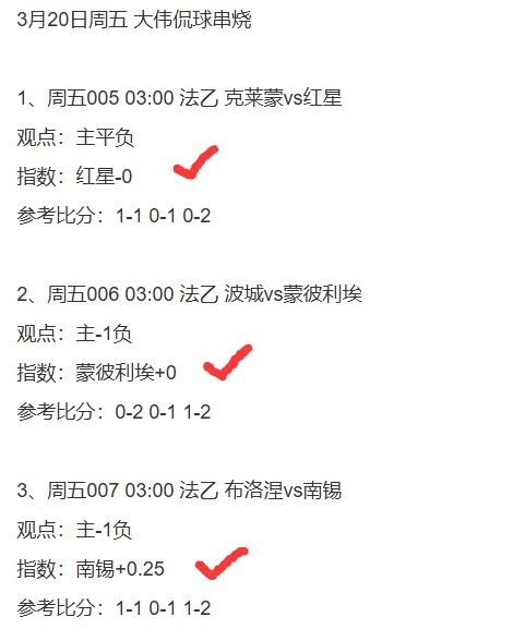3、法乙3串1,看好红星+蒙彼利埃+南锡方向打出!