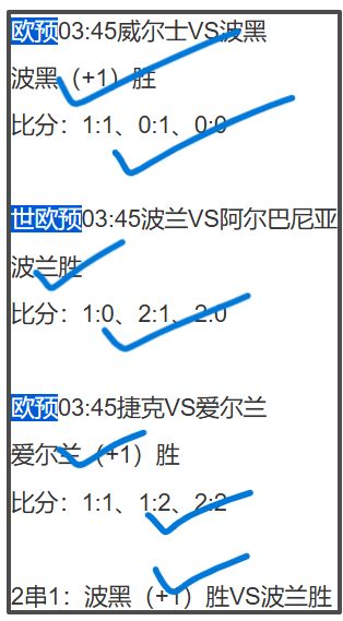 03:45威尔士、波兰、捷克三场主任和2串1全中且中3场比分: