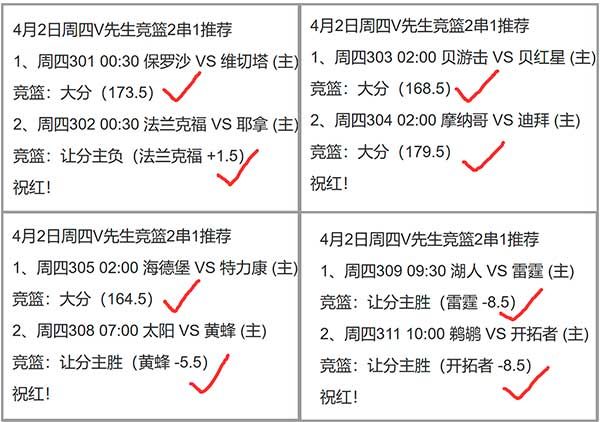 公推冲5连红,足篮命中6个2串1,单场15中14大红4个3串1!