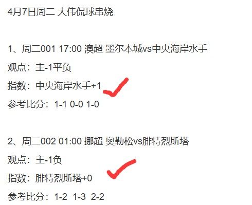 1、澳超+挪超2串1,看好中央海岸水手+腓特烈斯塔方向打出!