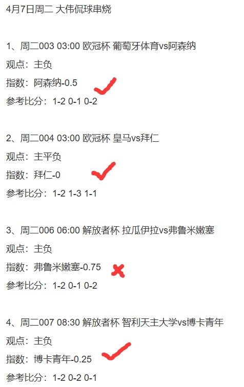 公推冲4连红,足球6中5收两个2串1,篮球收欧篮联2串1,单场一组3中2!