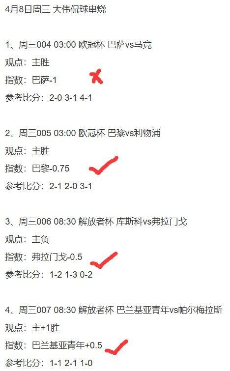 1、欧冠杯+解放者杯4串1,看好巴黎+弗拉门戈+巴兰基亚青年队方向打出,可惜巴萨因红牌黑了;